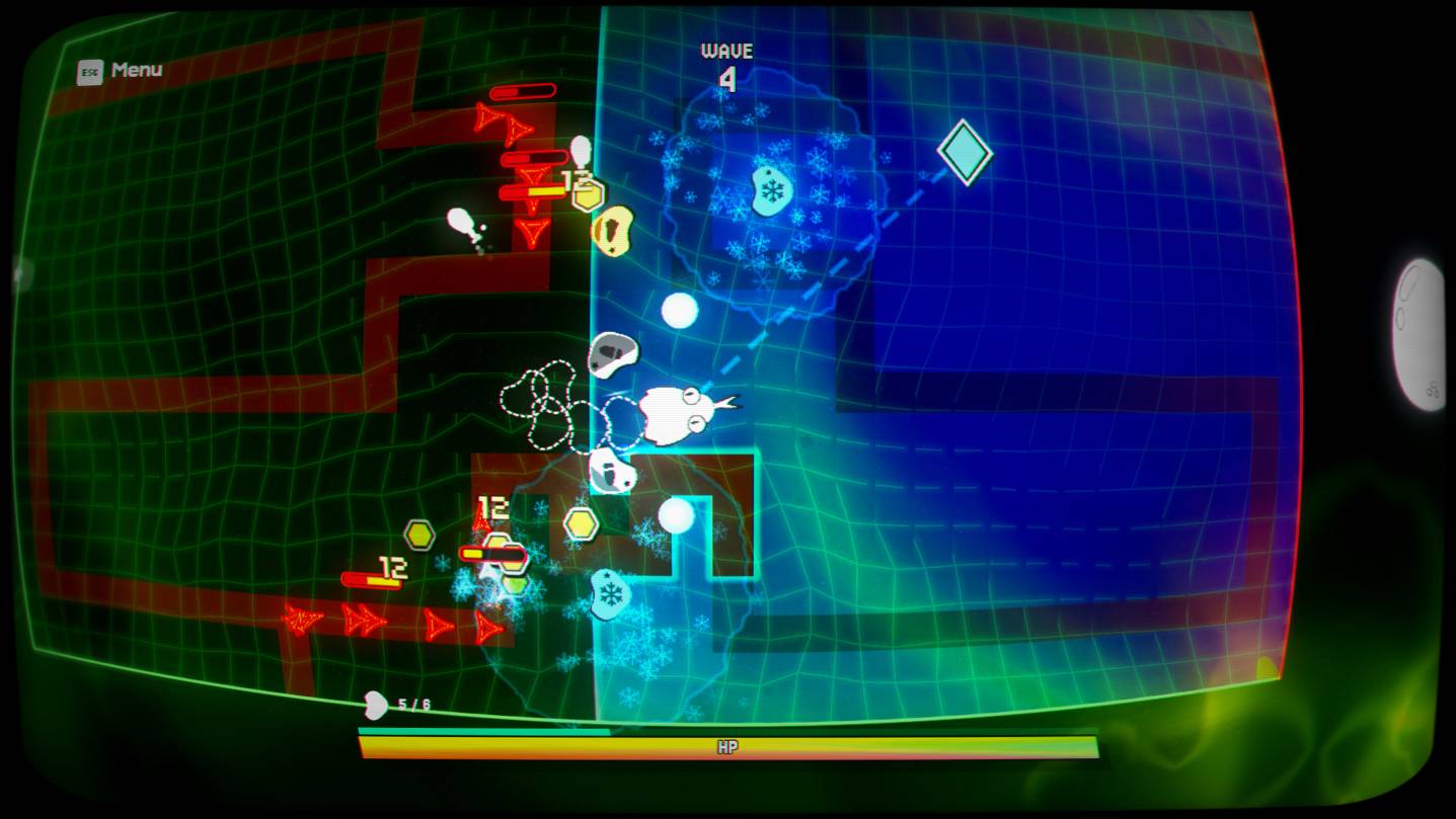 The grid warps with every explosion and impact. Enemies scatter. Your snake weaves through the chaos. It just feels good.